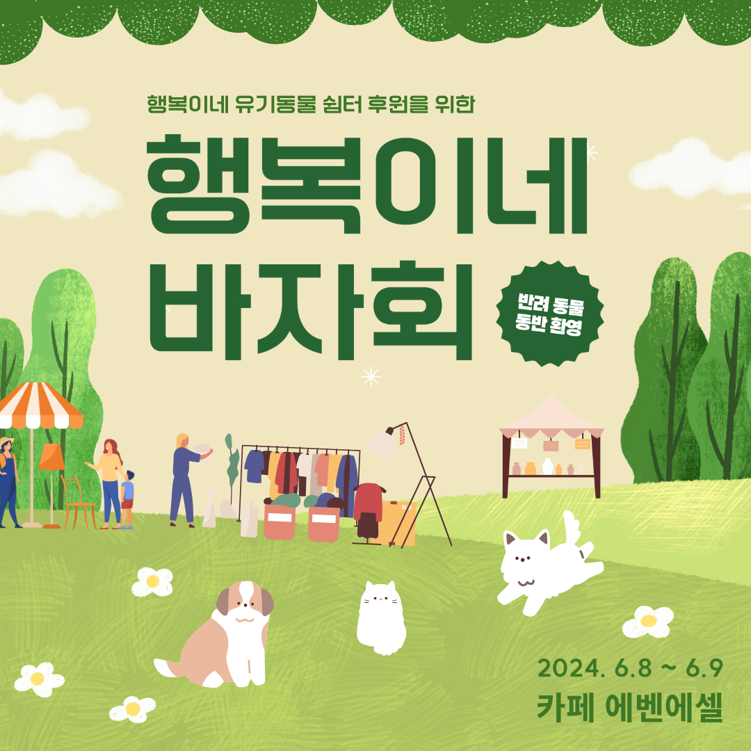 행복이네 유기동물 보호소 후원을 위한 바자회가 열려요.